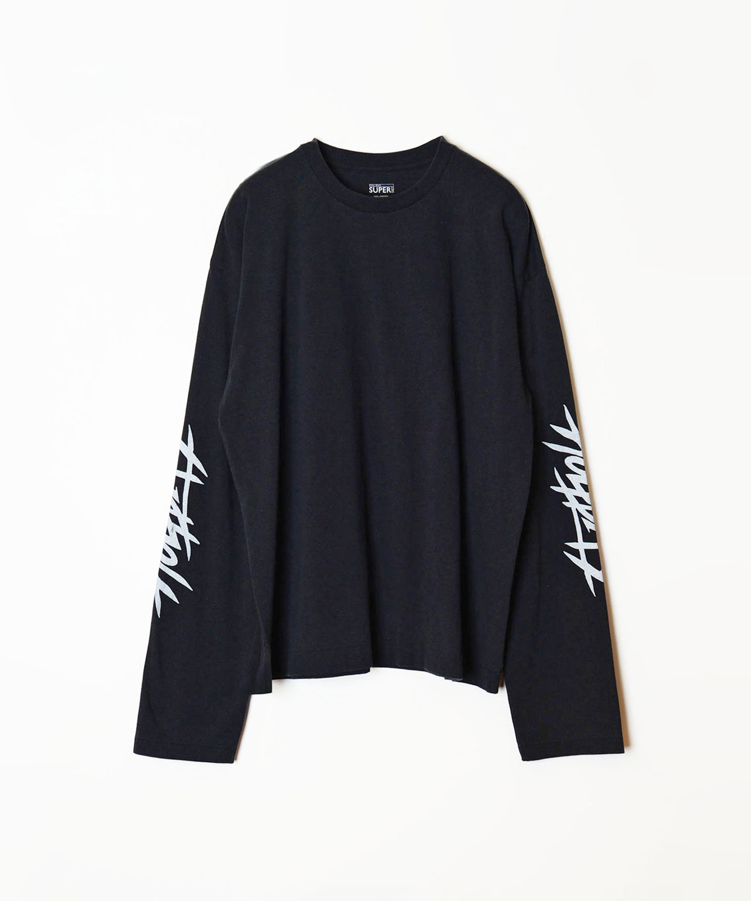 ライトオンスで着心地の良さが魅力の【SUPER FINE】L/S Tシャツ。ヴィンテージのような風合いを出すため特殊な加工をしています。ragelowのグラフィックが袖にプリントされています。