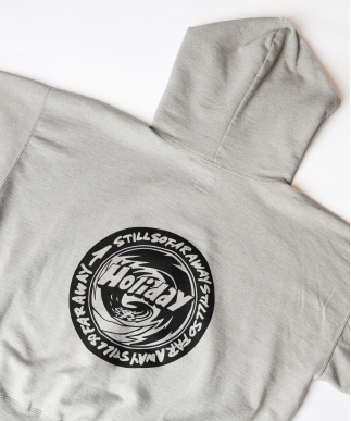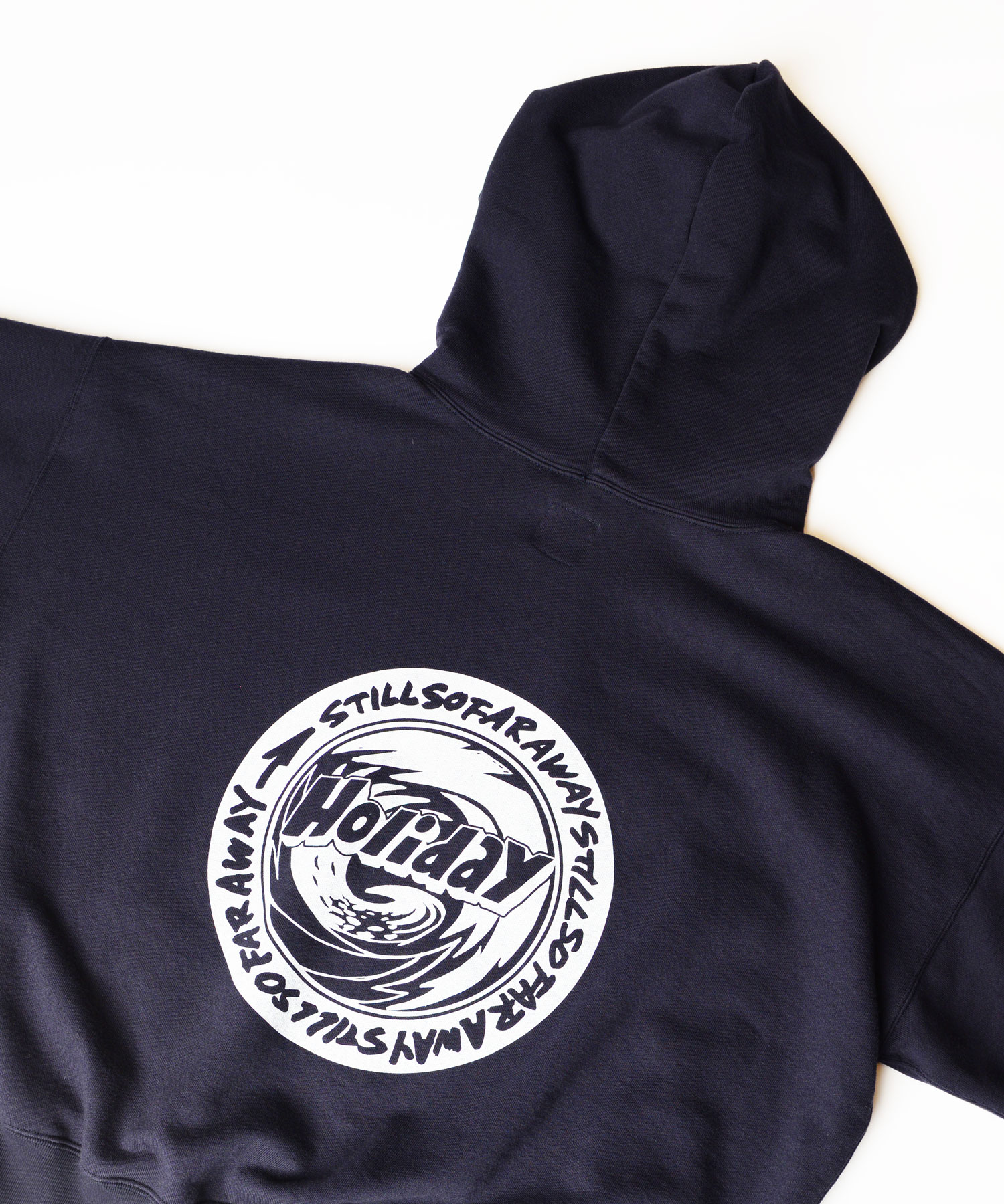 ポリエステルとコットンを使用した柔らかくライトな着心地が特徴のHOLIDAYオリジナルスウェットフーディー。仕上げに特殊な工程を踏むことでドライな質感とヴィンテージのような風合いに仕上げています。ragelowのグラフィックが前後と袖にプリントされています。裏起毛あり。