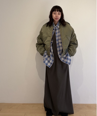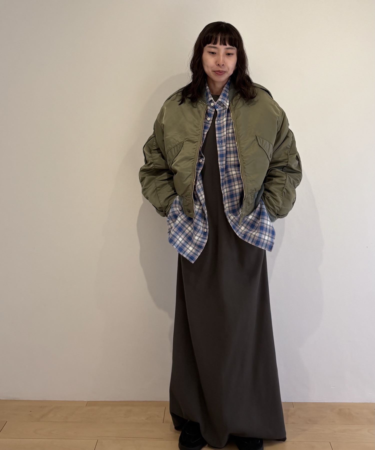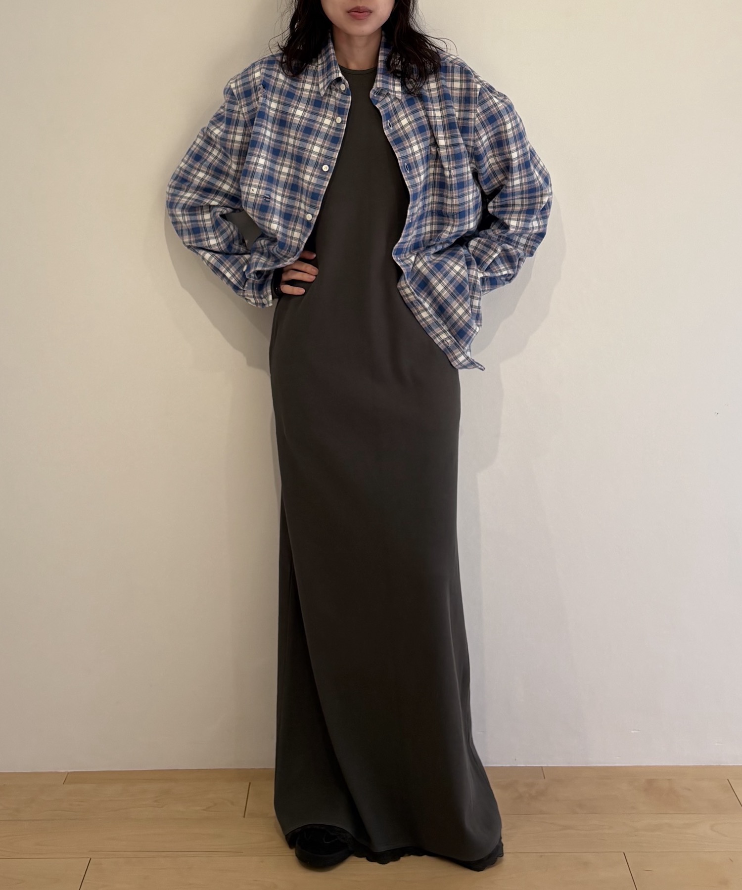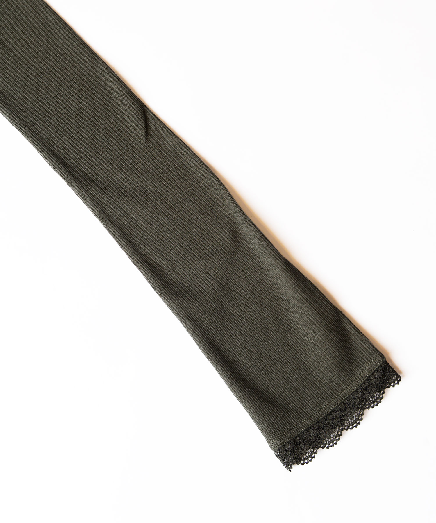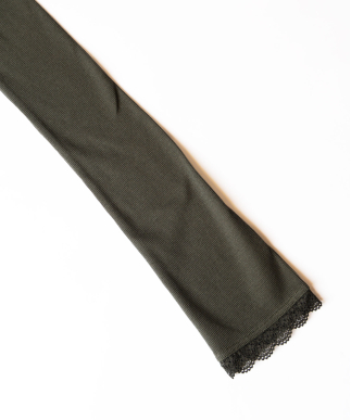 ソフトで着心地の良い【SUPER RIB】L/Sドレス。肩パッドの入った立体的なショルダーが印象的。袖はフレアで長めの仕様です。裾と袖口にあしらったレースがポイント。サイドポケット付き。