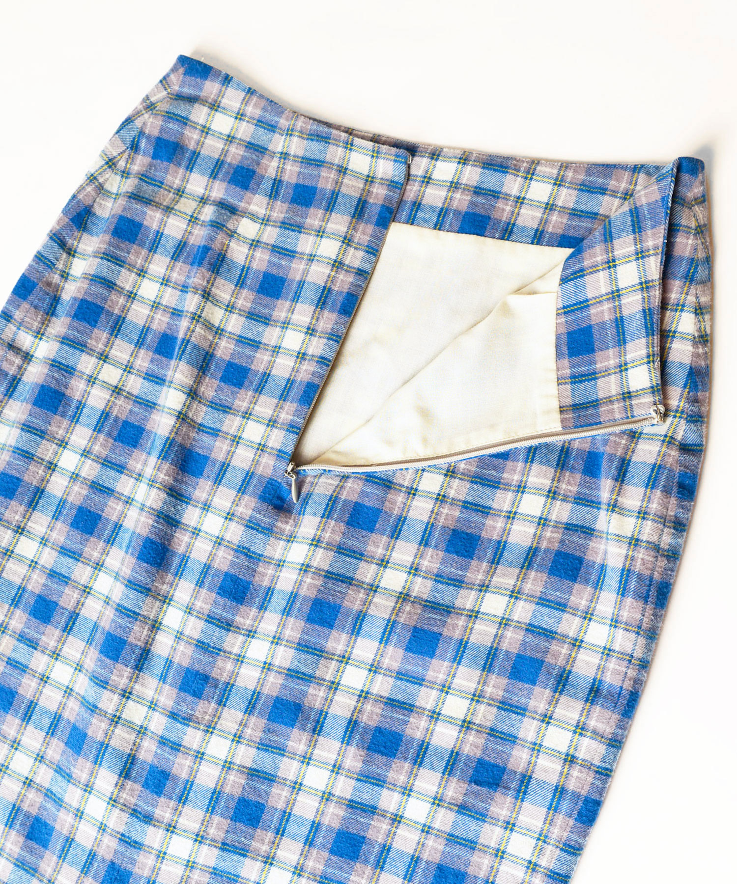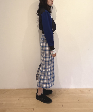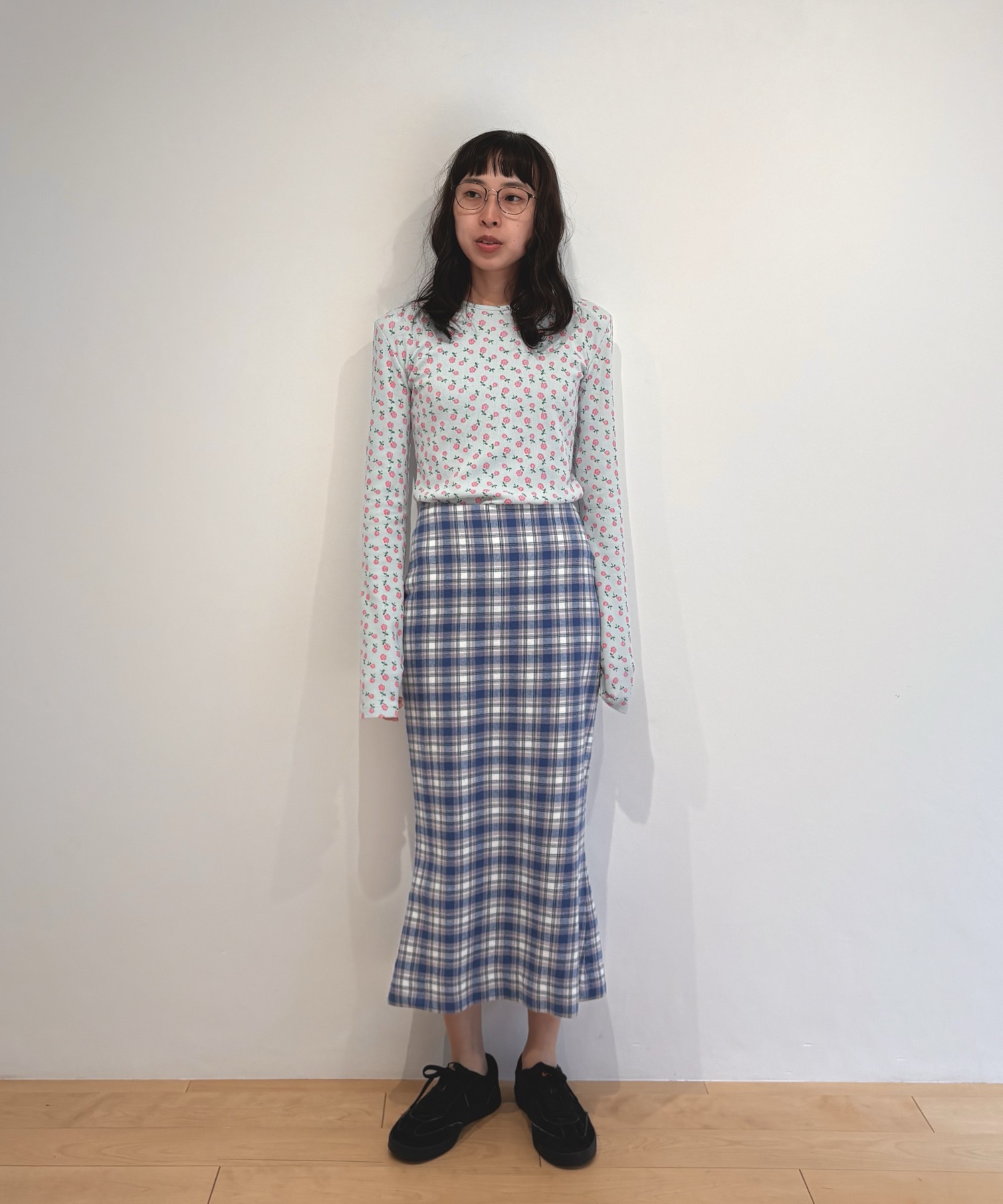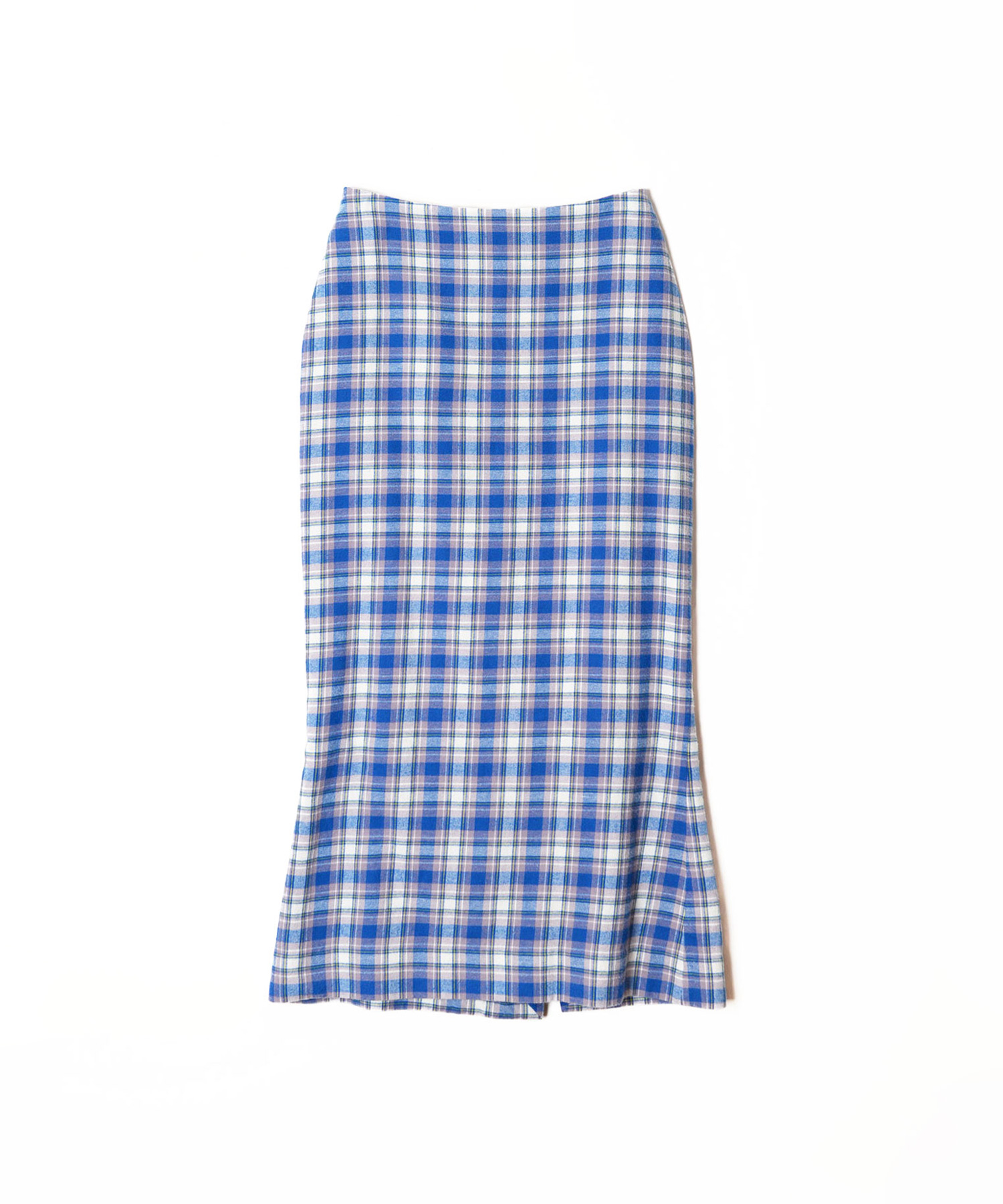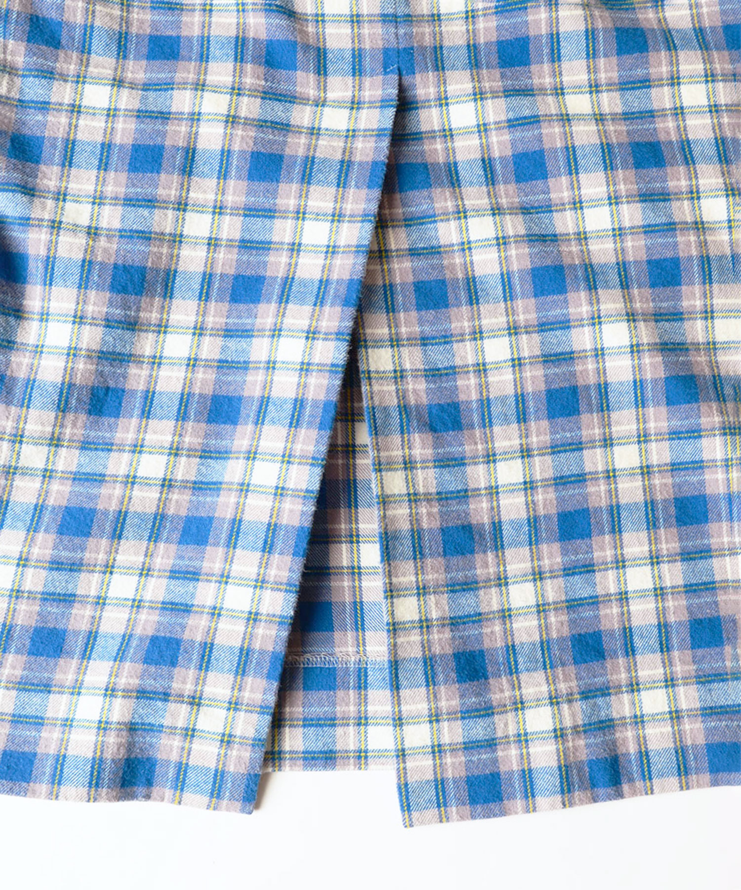 軽く起毛した薄手のビエラ生地を使用したスカート。オリジナルのチェックパターン。腰回りはタイトで裾に向かってフレアになっているマーメイドラインが印象的なデザイン。同素材のブラウスやシャツとセットアップスタイルもおすすめです。