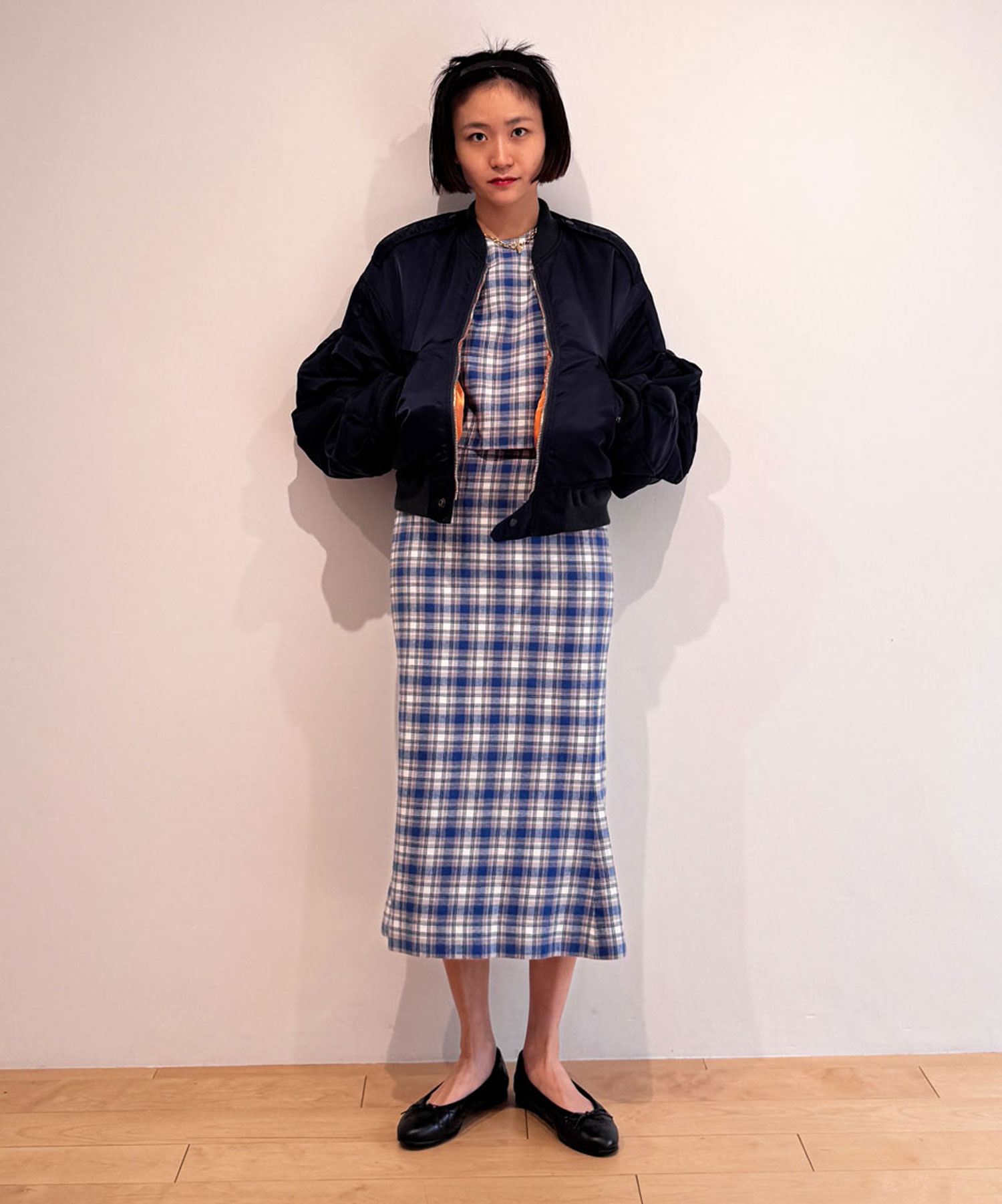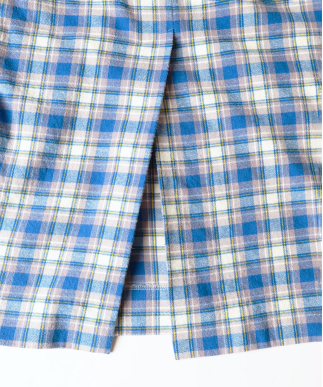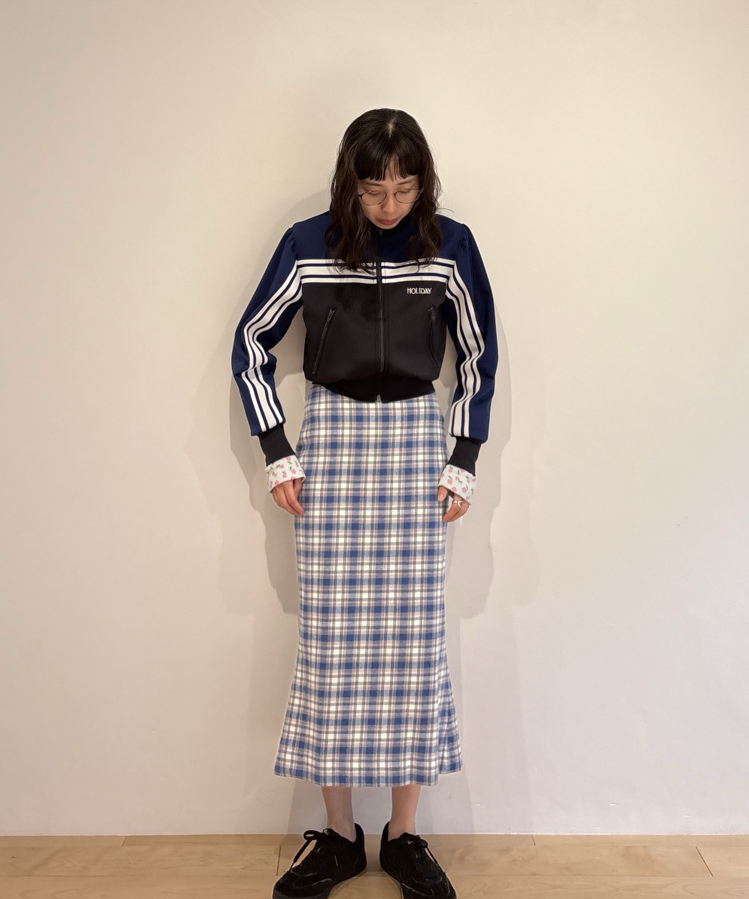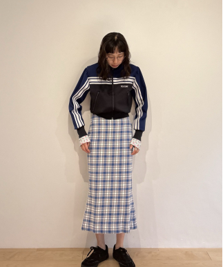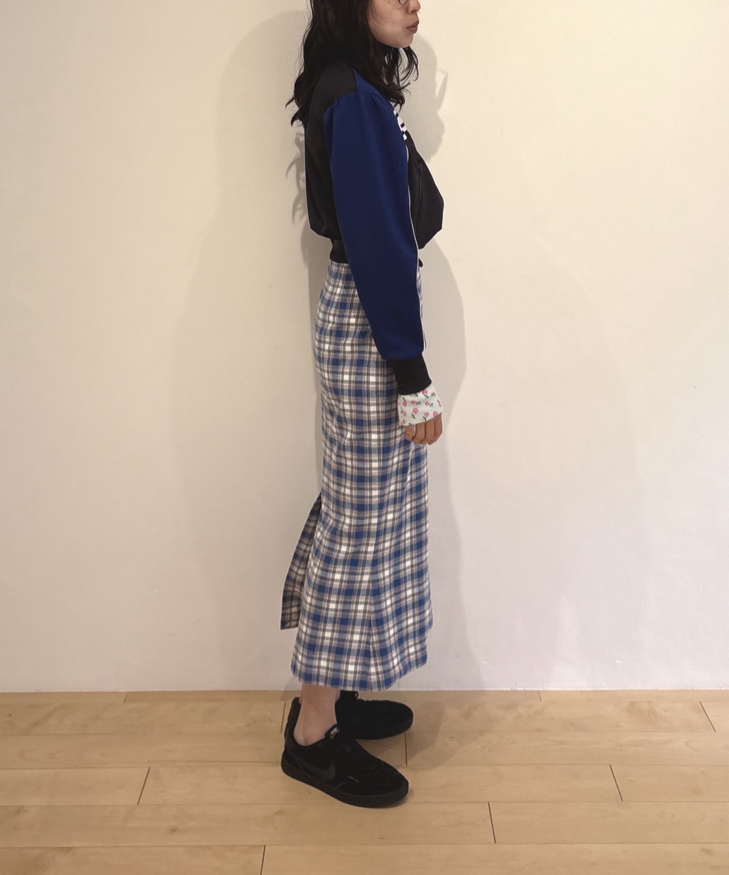軽く起毛した薄手のビエラ生地を使用したスカート。オリジナルのチェックパターン。腰回りはタイトで裾に向かってフレアになっているマーメイドラインが印象的なデザイン。同素材のブラウスやシャツとセットアップスタイルもおすすめです。