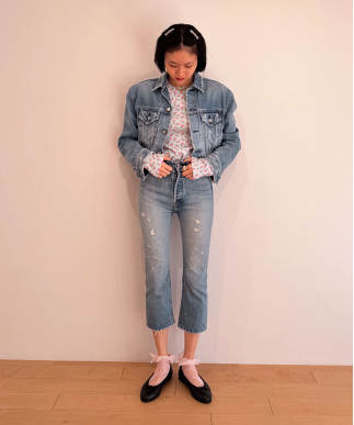 ムラ感のある12ozセルビッジデニムを使用したクロップド丈のハイウエストスキニーパンツ。長年着古したような風合いを出すため細部までこだわったリアルなヴィンテージ加工を施しています。生地、縫製、加工などすべての行程を岡山のデニム工場で行っています。