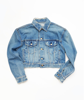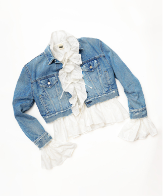 LACE-LAYER DAMAGE DENIM PADDED SHOULDER JACKET(LIGHT INDIGO)