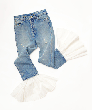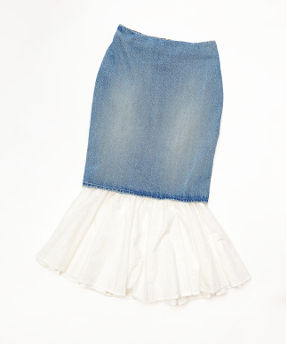 LACE-LAYER DAMAGE DENIM SKIRT(LIGHT INDIGO)