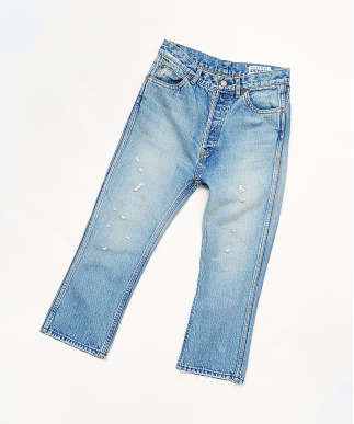 DAMAGE DENIM HIGH WAIST SKINNY CROPPED PANTS(LIGHT INDIGO)