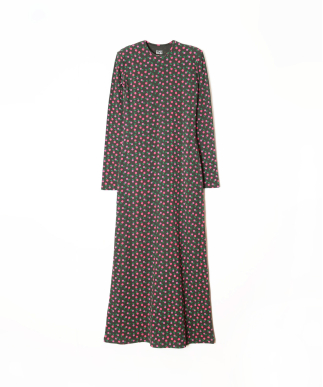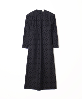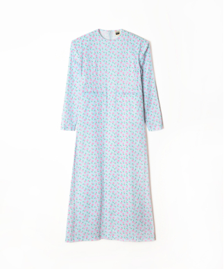 SUPER RIB PADDED SHOULDER L/S DRESS(FLOWER)